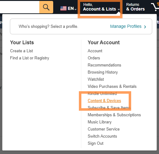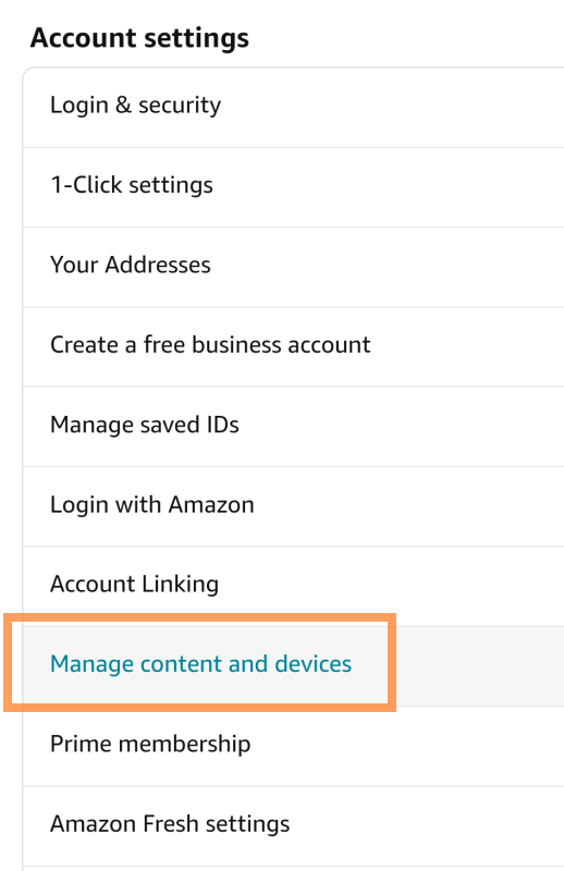 3) Account settings์์ Manage content and devices ํด๋ฆญ